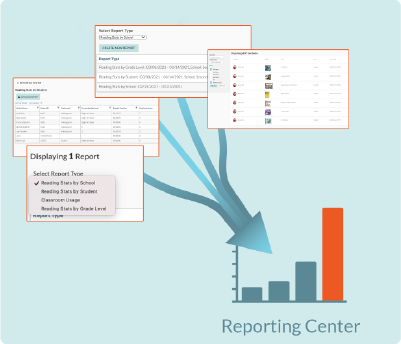 - Teacher and administrator dashboards with reading logs and progress data for every student